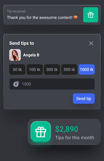 Tutti gli utenti ora possono darti la mancia semplicemente perché sei fantastica, e possono inviare un messaggio veloce insieme alla mancia.